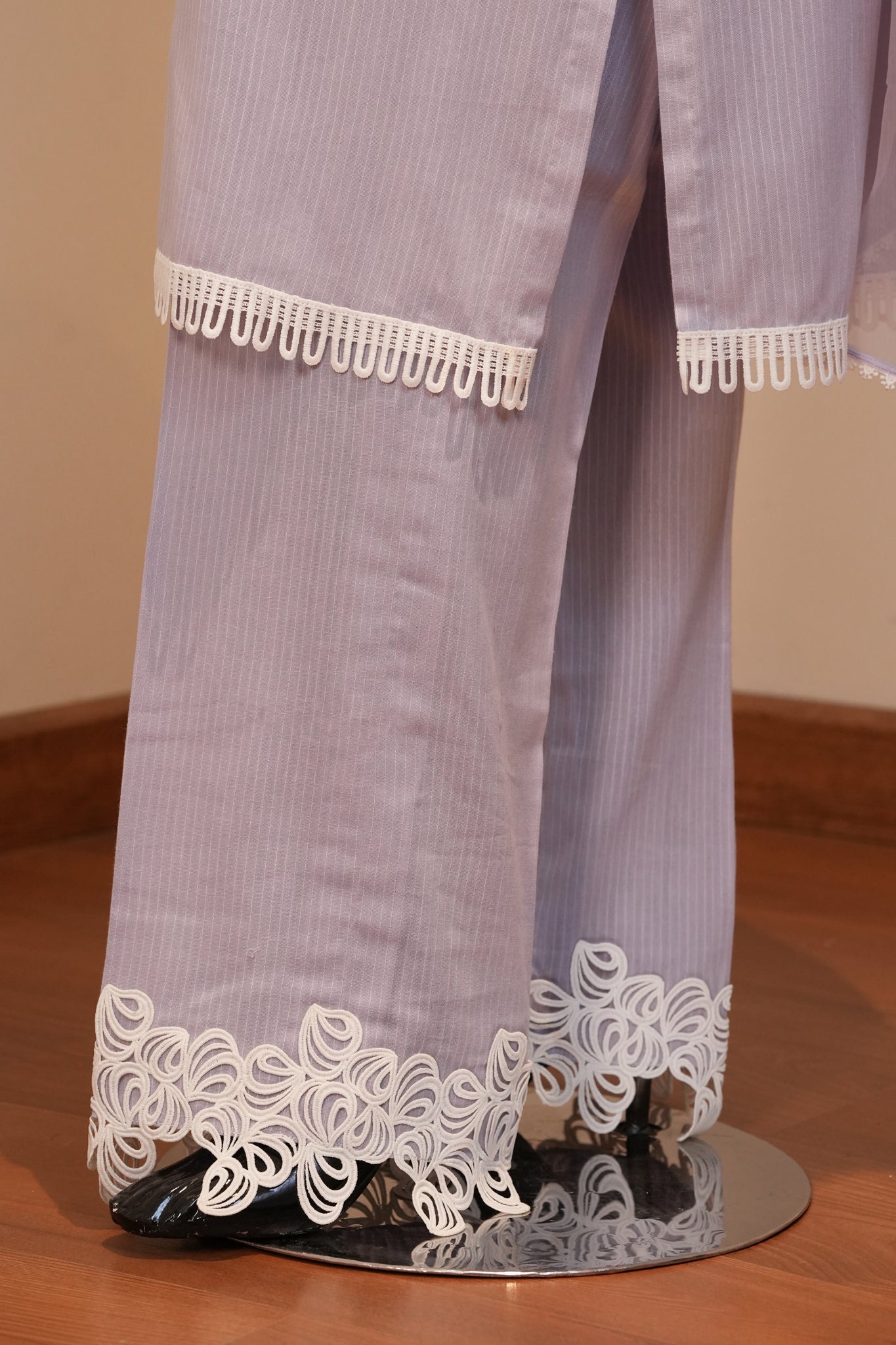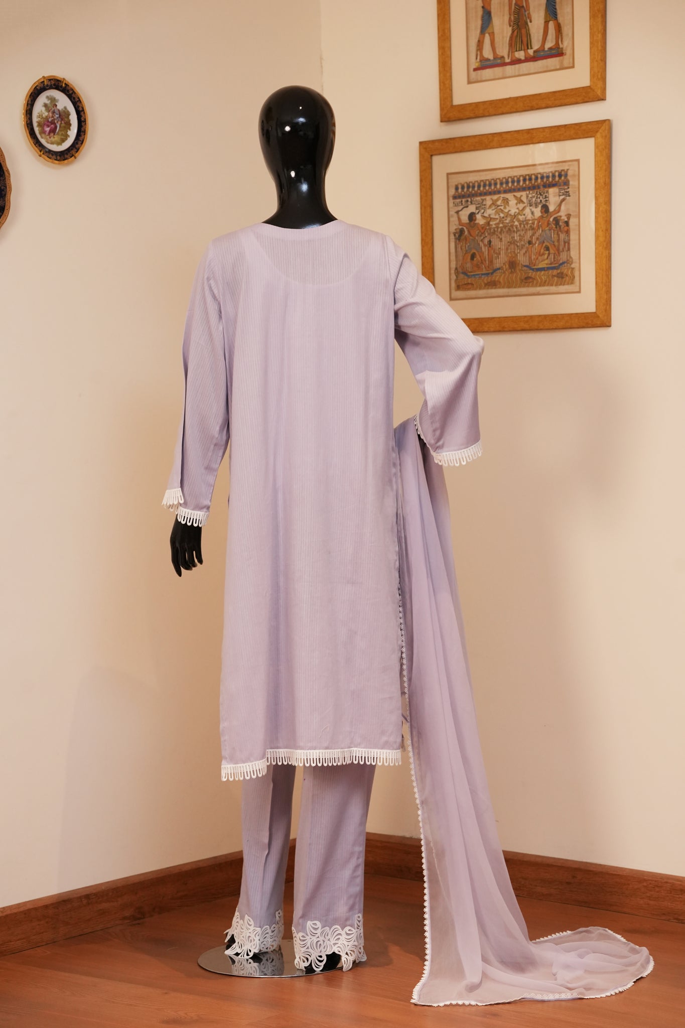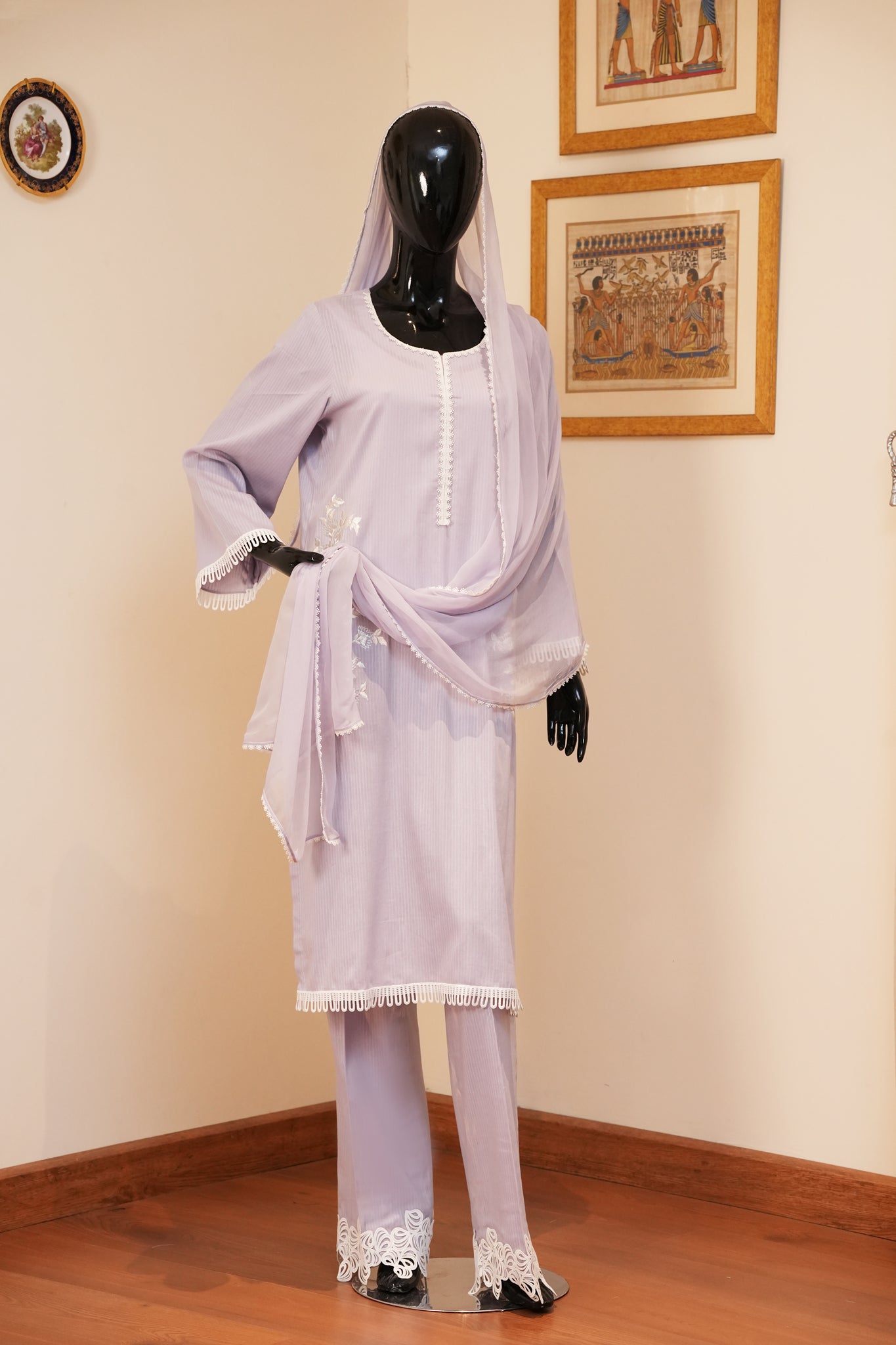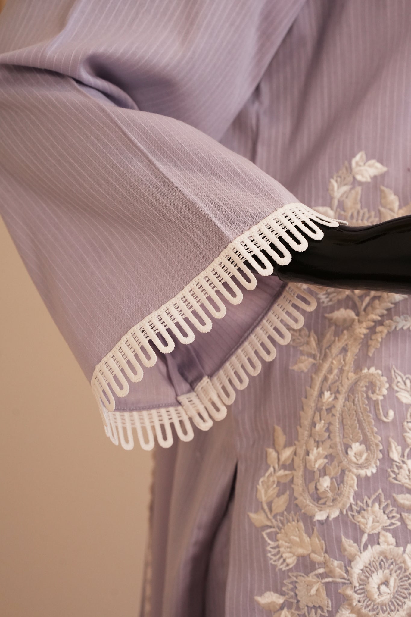 “Jamni” – a deep, rich shade inspired by the inner hue of black plum (Jamun), exuding sophistication and timeless elegance. The soft cotton fabric is beautifully adorned with intricate embroidery in off-white thread, creating a striking contrast against the deep base. Delicate embellishments grace the trousers and dupatta, adding a subtle yet luxurious touch. Perfectly blending tradition with contemporary finesse, this ensemble is ideal for making a refined statement